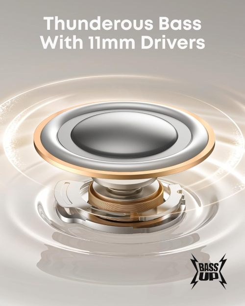 Battery & Charging: Up to 12 hours of continuous playback (ANC off), with the case extending this up to 192 hours. A 10-minute charge provides 5 hours of listening. Case Functionality: The charging case features a 3,000mAh battery, capable of charging a phone (e.g., iPhone 16 Pro to 50% or Samsung S24 to 45%), and includes a built-in phone stand. Audio Quality: 11mm composite drivers combined with BassUp technology for enhanced, punchy bass. Noise Cancellation: Adaptive Noise Cancelling (ANC) intelligently adjusts to surrounding environmental noise. Calls: 6 microphones combined with AI algorithms designed to reduce background noise. Connectivity: Bluetooth 5.3 with support for multipoint connections (switching between two devices). Durability: IPX5 rated for water and sweat resistance.