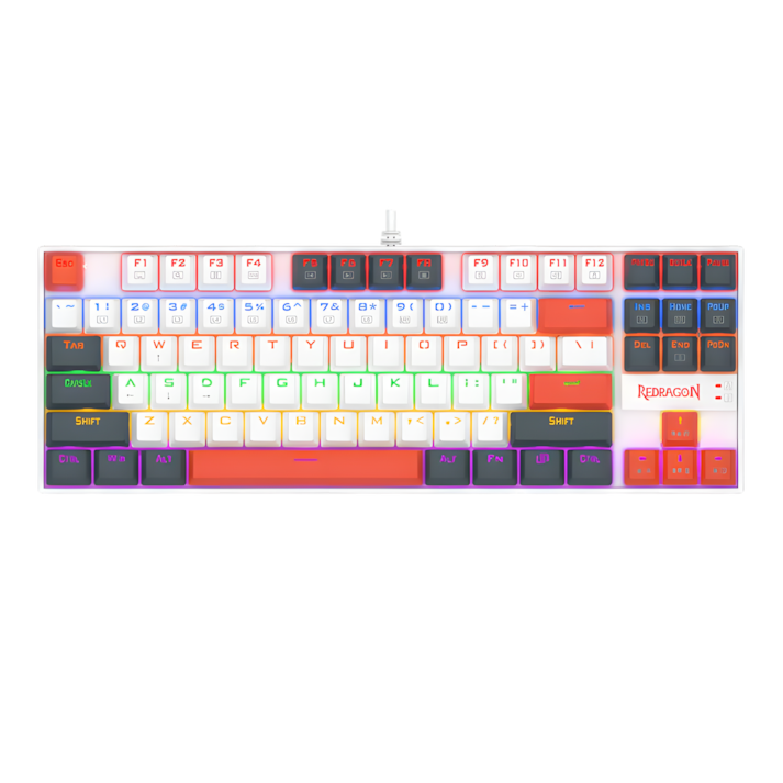 Redragon K552WLR-R Kumara هي لوحة مفاتيح ألعاب سلكية صغيرة الحجم، بدون لوحة أرقام (TKL)، مزودة بمفاتيح حمراء خطية، وإضاءة خلفية LED بألوان قوس قزح نابضة بالحياة، وهيكل متين من المعدن والبلاستيك ABS. وهي مصممة للكتابة السريعة والهادئة والدقيقة، وتتميز بمفاتيح قابلة للتبديل السريع، وخاصية منع التداخل، وتصميم مقاوم للرذاذ، مما يجعلها مثالية لإعدادات الألعاب