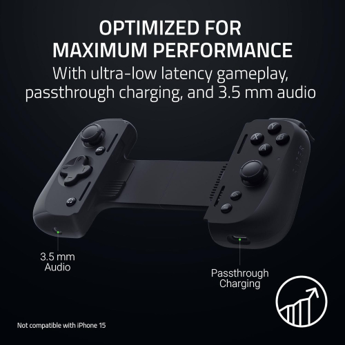 • Razer Kishi V2 Pro هو الجيل التالي من وحدة تحكم الألعاب المحمولة العالمية المصممة لأجهزة Android، وتوفر تحكمًا وغمرًا من فئة وحدة التحكم مع لمسات Razer™ HyperSense والمفاتيح الدقيقة والمشغلات التناظرية والأزرار القابلة للبرمجة لتحسين الدقة. • تدعم وحدة التحكم هذه مجموعة واسعة من عناوين Android وخدمات الألعاب السحابية، مما يسمح للمستخدمين بلعب ألعاب AAA PC ووحدة التحكم مباشرة على هواتفهم عبر تطبيقات البث، مع مرونة في اللعب المستند إلى السحابة أو الكمبيوتر الشخصي / وحدة التحكم. • يتميز Kishi V2 Pro بملاءمة عالمية مع جسر قابل للتمديد، ويحمل بشكل آمن الهواتف الذكية الأكثر شعبية التي تعمل بنظام Android، ويقلل اتصال USB-C المباشر من زمن انتقال الإدخال للألعاب سريعة الاستجابة. • تتضمن وحدة التحكم ميزات مريحة مثل الشحن عبر المرور للحفاظ على تشغيل الهاتف أثناء اللعب، ومقبس صوت 3.5 مم لسماعات الرأس، ووضع وحدة تحكم افتراضي لتمكين دعم وحدة التحكم للألعاب التي تعمل باللمس فقط. • تم تحسين Razer Kishi V2 Pro للراحة وقابلية الحمل بتصميم مريح، وهو مدعوم من تطبيق Razer Nexus، الذي يوحد اكتشاف اللعبة وتخصيص وحدة التحكم ويوفر قاذفة ألعاب متكاملة، مع عمليات شراء مؤهلة بما في ذلك عرض Xbox Game Pass Ultimate لمدة شهر واحد.