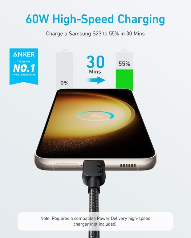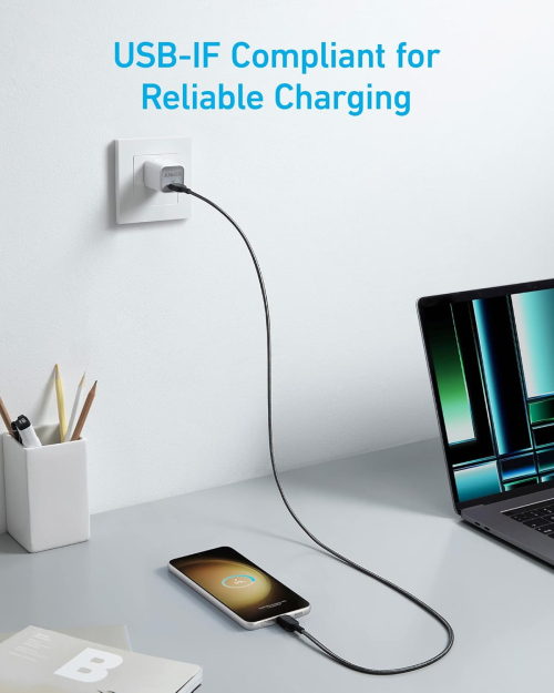 Cable USB-C To USB-C 1M Fast Charging: Supports up to 60W power delivery, capable of charging devices like the Samsung S24 to 55% in 30 minutes. Durability: Built with a braided nylon exterior and tested to endure over 12,000 bends. Data Transfer: Provides data transfer speeds up to 480 Mbps. Compatibility: Works with virtually all USB-C devices, including phones, tablets, and laptops. Length: 1 Meter (3.3 feet). Cable Type: USB-C to USB-C. Safety: USB-IF compliant for safe and reliable charging. Warranty: 24-month warranty. Important Notes: This is not a USB-A to USB-C cable; it requires a USB-C wall charger. This cable does not support media display/video output.