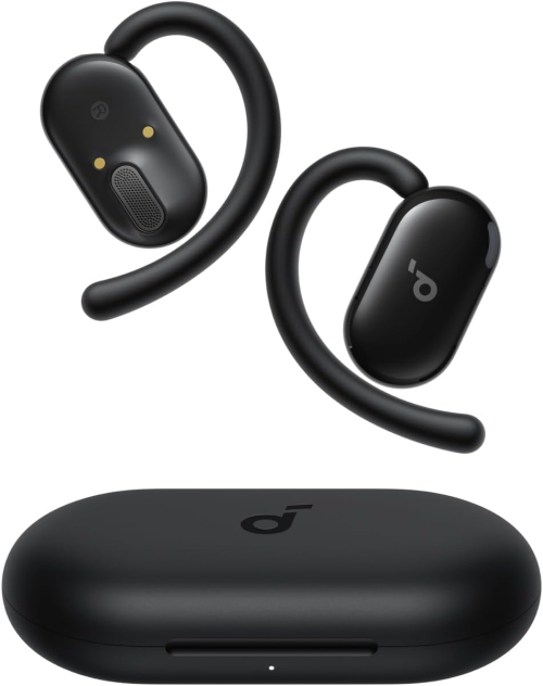 Design & Comfort: Open-ear, non-intrusive, lightweight, and skin-friendly TPU materials. Four-point adjustable ear hooks ensure a snug fit. Sound & Audio: 16mm drivers with titanium-coated domes, featuring Soundcore's BassUp technology. Call Quality: Four microphones combined with an AI algorithm for noise reduction during calls. Battery & Connectivity: Up to 36 hours of total playtime (8 hours + 28 hours with charging case). Bluetooth 5.4 with multipoint connection (switch between two devices). Durability & Style: IP55-rated for sweat and water resistance. Features customizable lights that sync with music. App Support: Customizable EQ presets via the Soundcore app.
