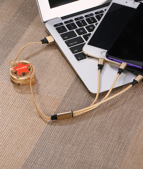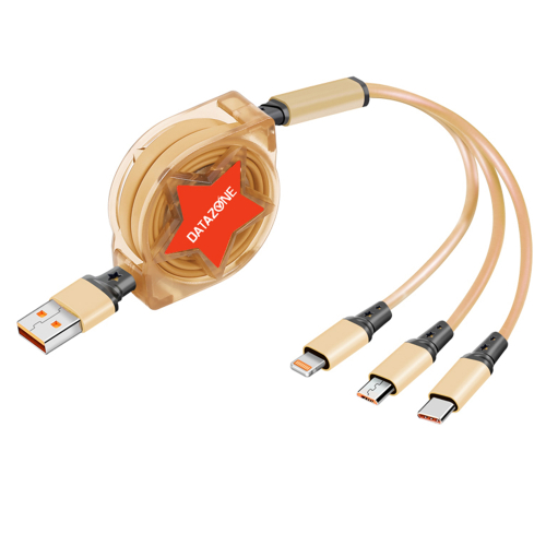Datazone 3in1 Retractable Charger Cable ( Gold )