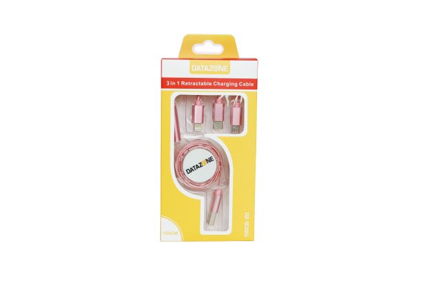 Datazone 3in1 Retractable Charger Cable( Pink )