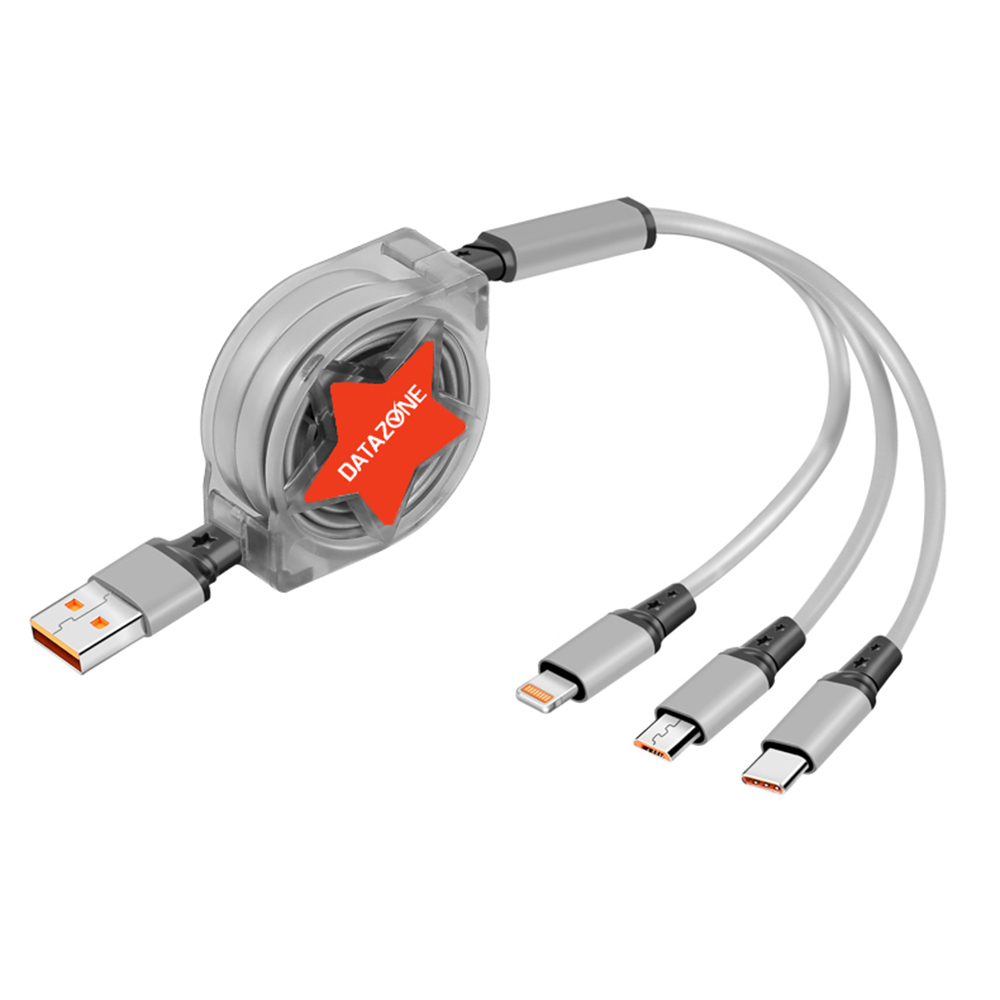 Datazone 3in1 Retractable Charger Cable( Gray )