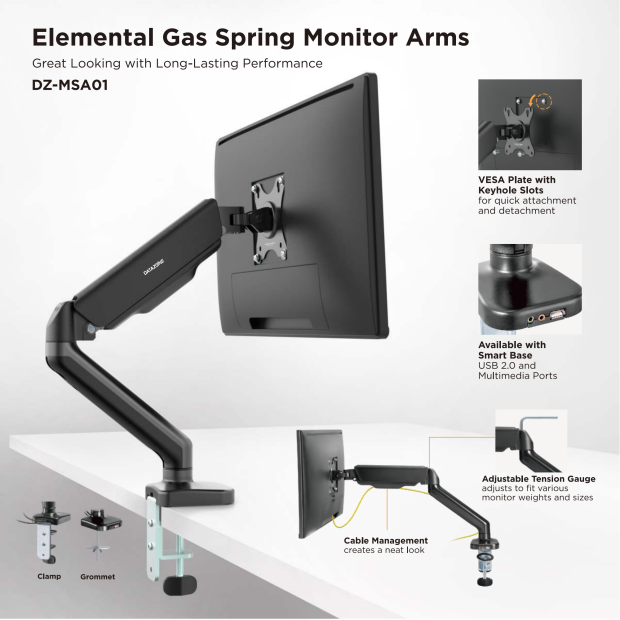 Monitor Desk Mount single Arm Stand, Full Motion Monitor Arm (Holds up to 2-9kG) with Gas Spring for 17 to 32 Inch LCD LED Computer Monitor, tilt -30 to 71