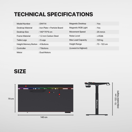 DUBLIN Workstation Dual Motor Adjustable Rising Magnetic Desk , Auto Pause Smart Detection, STRENGTH MEET FUNCTION