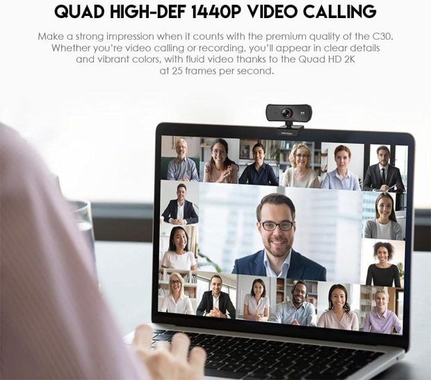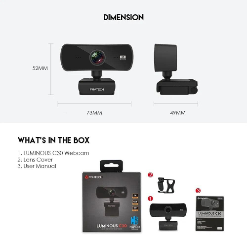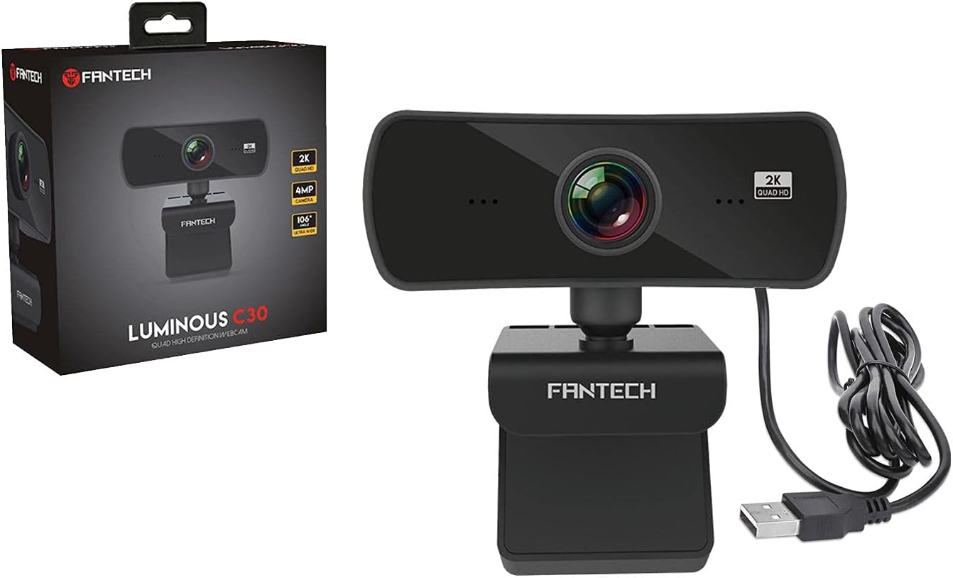 FANTECH LUMINOUS C30 QUAD HIGH DEF 1440P 2K QUAD HD USB Web Camera Webcam with Built-in Microphone | WITH LENS COVER | for PC/MAC/LAPTOP