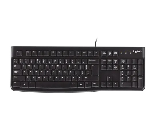 LOGITECH K120 لوحة المفاتيح السلكية K120 موثوقة ومتينة، مزودة بلوحة أرقام بتصميم سهل الاستخدام يعمل مباشرةً بعد إخراجها من العلبة. ما عليك سوى توصيل لوحة المفاتيح السلكية هذه عبر منفذ USB والبدء
