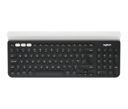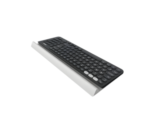 Logitech K780 Bluetooth تعرف على K780، لوحة مفاتيح صغيرة الحجم مصممة العصر تعدد المهام الحالي. متوافقة مع ما يصل إلى ثلاثة أجهزة، يمكنك التبديل بين الكتابة على هاتفك وجهازك اللوحي وجهاز الكمبيوتر بسلاسة