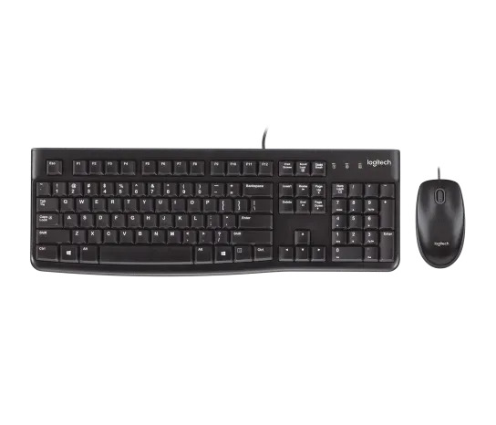 LOGITECH MK120 توفر لوحة المفاتيح والماوس كاملة الحجم تصميما مألوفا وسهل الاستخدام، ويعملان مباشرة بعد إخراجهما من العلبة. ما عليك سوى توصيل هذه المجموعة السلكية عبر منفذ USB والبدء