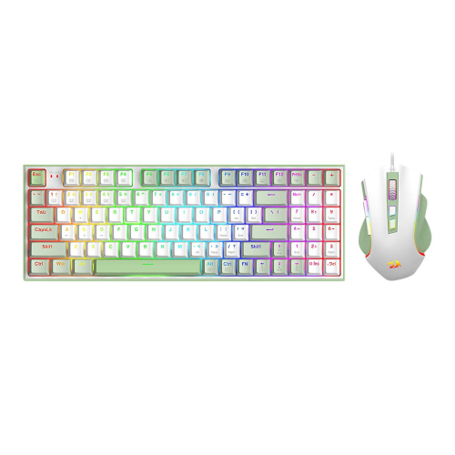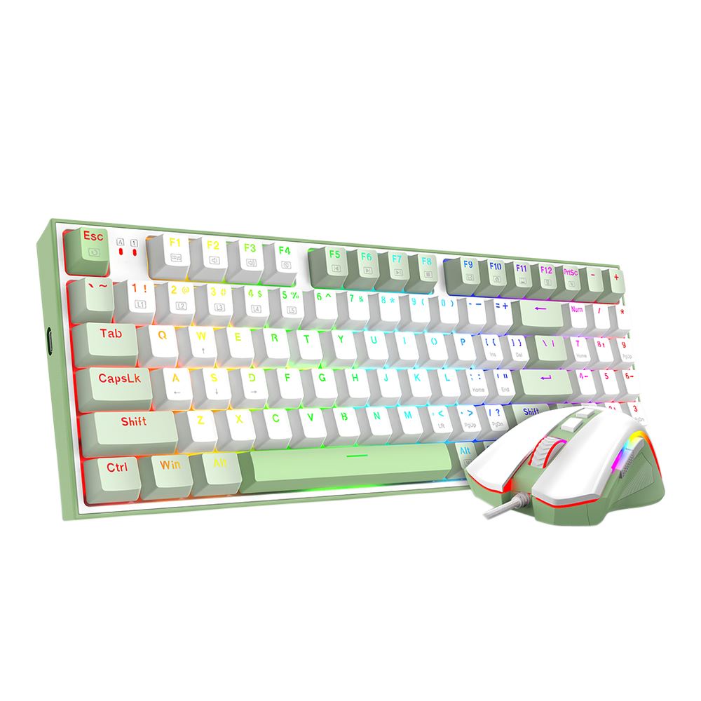 • Redragon S134" تتميز بجمالية بيضاء وخضراء ماتشا. • ويشمل لوحة مفاتيح ميكانيكية مدمجة 94 مفتاحًا مع مفاتيح بنية قابلة للتبديل الساخن وإضاءة RGB. • يحتوي الماوس المصاحب على تصميم مريح و 7 أزرار قابلة للبرمجة ومستشعر بصري 7200 DPI. • تستخدم هذه المجموعة السلكية كابل USB-C قابل للفصل وقبعات مفاتيح PBT للمتانة، مما يوفر إعدادًا وظيفيا للألعاب والإنتاجية.
