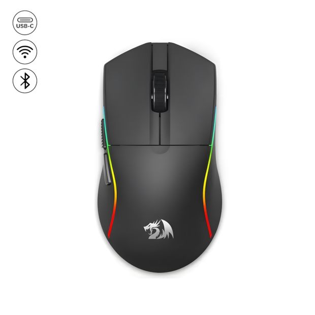 • Redragon Deicide Pro M816 RGB هو فأرة ألعاب متعددة الاستخدامات توفر اتصالًا ثلاثي الأوضاع بما في ذلك اللاسلكي السلكي والبلوتوث و 2.4G، ويضم مستشعر Pixart 3395 قادر على ما يصل إلى 26000 DPI لحركة المؤشر الدقيقة. • يزن هذا الماوس الخفيف 61 جرامًا فقط ويضم بطارية طويلة الأمد توفر ما يصل إلى 200 ساعة من الاستخدام، تكملها إضاءة خلفية حقيقية لـ RGB مع ملايين التأثيرات القابلة للتخصيص عبر البرامج. • يدعم M816-PRO برنامج تخصيص Redragon الاحترافي، مما يسمح للمستخدمين بضبط DPI ومعدل الإبلاغ وإضاءة RGB وتخصيص أزرار 6 لتلبية تفضيلات الألعاب الفردية.