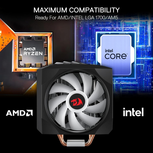 مبرد المعالج Redragon CC-2199 Balder ARGB هو مبرد هوائي عالي الأداء مصمم لوحدات المعالجة المركزية (CPU)، ويتميز بإضاءة RGB قابلة للتخصيص وتبريد فعال. المميزات الرئيسية: نوع المبرد: مبرد هوائي لبرج واحد (Single Tower). التبريد: مجهز بـ 4 أنابيب حرارية نحاسية (Copper Heatpipes) لضمان نقل الحرارة بكفاءة. المراوح: مروحة 120 ملم PWM توفر توازناً بين الأداء والهدوء. الأداء: سرعة دوران تصل إلى 1600-1800 دورة في الدقيقة (RPM)، وتدفق هواء قوي يبلغ 72 CFM. الإضاءة: إضاءة ARGB قابلة للتخصيص تضفي مظهراً جمالياً. مستوى الضجيج: هادئ، حيث يبلغ حوالي 32.6 ديسيبل. التوافق: يدعم مقابس Intel (LGA1700/1200/115X) و AMD (AM4/AM5). المواصفات الفنية: حجم المروحة: 120 ملم (FDB Bearing). الموصل: 3-Pin. اللون: أسود.