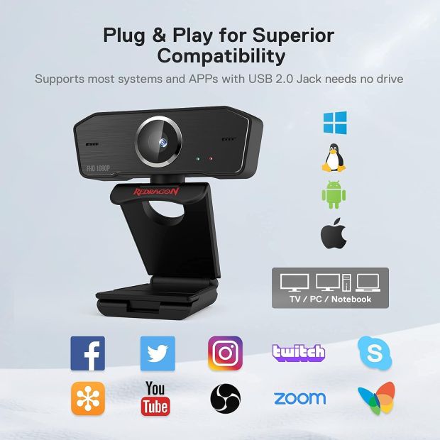 تُعد كاميرا Redragon GW800 Hitman 1080P (والمعروفة بـ GW800-1) خيارًا ممتازًا للبث المباشر، المؤتمرات الفيديو، والتعلم عن بعد، حيث توفر دقة عالية وصوتًا واضحًا بسعر منافس. إليك وصف شامل للكاميرا باللغة العربية: الميزات الرئيسية (Key Features) دقة عالية FHD 1080p: توفر الكاميرا صورة بدقة 1920x1080 بكسل بمعدل 30 إطارًا في الثانية (30fps)، مما يضمن صورة واضحة وطبيعية. ميكروفون مزدوج مدمج (Built-in Dual Microphone): تحتوي على ميكروفونين MEMS مدمجين عاليي الدقة، مما يضمن التقاط صوت واضح ومستقر، ويقلل من الضوضاء الخلفية. تقنية التركيز الثابت (Fixed Focus): تتميز بعدسة بصرية متطورة بتركيز ثابت يضمن ثبات الصورة ووضوحها دون الحاجة لإعادة التركيز اليدوي. دوران 360 درجة: تتيح الكاميرا دورانًا أفقيًا بزاوية 360 درجة مع دوران رأسي بزاوية 90 درجة، مما يمنحك المرونة الكاملة لإيجاد الزاوية المثالية. التوصيل والتشغيل (Plug & Play): تعمل عبر منفذ USB 2.0 دون الحاجة إلى تثبيت برامج تعريف (Drivers) معقدة، وهي متوافقة مع معظم أنظمة التشغيل مثل Windows XP, Vista, 7-10, Linux, وMac OS. تصميم مرن للتركيب: تأتي مع مشبك قابل للتدوير يمكن تثبيته بإحكام على الشاشات، أجهزة الكمبيوتر المحمول (Laptop)، أو وضعها على الطاولة. المواصفات الفنية (Technical Specifications) الموديل: Redragon GW800 Hitman (GW800-1) الدقة: 1080p Full HD نوع التركيز: ثابت (Fixed Focus) واجهة التوصيل: USB 2.0 زاوية الرؤية: 72 درجة صيغة الفيديو: MJPEG/YUY2 الميكروفون: ميكروفون مزدوج MEMS الاستخدامات البث المباشر (Twitch, YouTube) اجتماعات العمل (Zoom, Skype, Teams)