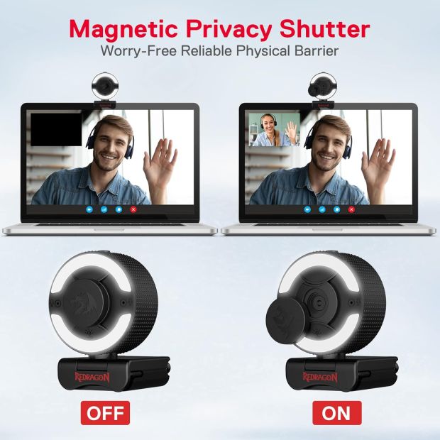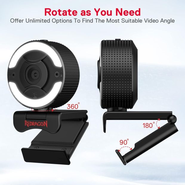 تُعد كاميرا الويب Redragon GW910 OneShot (المعروفة بـ GW910 FHD Webcam) خياراً ممتازاً للبث المباشر (Streaming)، اجتماعات الفيديو، والتعلم عن بعد، وتتميز بدقة 1080p عالية الوضوح مع إضاءة مدمجة. دقة الفيديو (Resolution): تصوير Full HD 1080p (1920x1080) بسرعة 30 إطاراً في الثانية (30FPS) لتقديم صورة واضحة وزاهية. العدسة والتركيز: عدسة بصرية متطورة بتركيز ثابت (Fixed Focus) لضمان ثبات الصورة. إضاءة مدمجة (Ring Light): تحتوي على حلقة إضاءة مدمجة قابلة للتعديل بـ 3 مستويات (3-Level Adjustable Ring Light) لتوفير إضاءة مثالية حتى في الغرف المظلمة، ويمكن التحكم بها عبر اللمس. التقريب الرقمي (Digital Zoom): تدعم التقريب الرقمي حتى 5 مستويات (5 Levels Digital Zoom) لضبط المشهد. الصوت (Microphone): مزودة بميكروفون مزدوج ستيريو (Dual Stereo Microphone) مدمج، يقلل الضوضاء ويضمن صوتاً واضحاً ومستقراً. الخصوصية والأمان: تأتي مع غطاء خصوصية مغناطيسي (Magnetic Privacy Cover) لحماية خصوصيتك عند عدم استخدام الكاميرا. التوصيل والتشغيل (Plug & Play): تعمل عبر واجهة USB 2.0 دون الحاجة لتثبيت تعريفات معقدة، وتتوافق مع مختلف أنظمة التشغيل (Windows, Mac) وبرامج البث (OBS, Discord, Skype). التصميم والتركيب: تصميم أنيق باللون الأسود، يمكن تركيبها بسهولة على الشاشات أو الكمبيوتر المحمول (Laptop)، وتدعم الدوران 360 درجة.