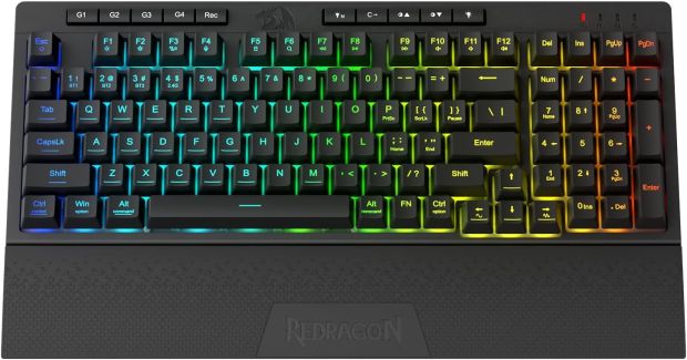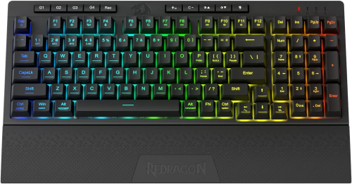 ريدراغون شيفا (Redragon K515 PRO Shiva) هي لوحة مفاتيح ألعاب لاسلكية غشائية (Membrane) مدمجة بـ 98 مفتاحاً، مصممة لتقليد الشعور الميكانيكي بـ Linear Switch. تتميز باتصال ثلاثي الأوضاع (بلوتوث، 2.4 جيجاهرتز، USB-C)، وإضاءة RGB خلفية، ومسند معصم مغناطيسي، مما يوفر أداءً مريحاً وسلساً للاعبين.