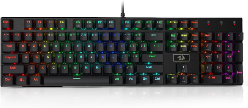 لوحة المفاتيح الميكانيكية Redragon K556 RGB (Devarajas) هي لوحة مفاتيح ألعاب كاملة الحجم مصممة للمتانة والأداء العالي، وتتميز بإطار من الألومنيوم المتين وإضاءة خلفية RGB قابلة للتخصيص. أهم المميزات والمواصفات: مفاتيح ميكانيكية (Hot-Swappable): تأتي بمفاتيح بنية (Brown Switches) توفر تجربة كتابة ملموسة وهادئة نوعًا ما، وهي قابلة للتبديل السريع (Hot-swap) لتناسب معظم أنواع المفاتيح (3-pin أو 5-pin). هيكل متين: مصنوعة من الألومنيوم المصقول بالكامل (Brushed Aluminum Frame) مما يمنحها ثباتاً ومتانة عالية. إضاءة RGB ديناميكية: تحتوي على 20 وضع إضاءة خلفية معدة مسبقًا، ويمكن تخصيص ألوان الإضاءة والسطوع والسرعة. مضادة للتعليق (Anti-ghosting): تدعم خاصية N-key rollover لـ 104 مفتاح، مما يضمن دقة الأداء وعدم تداخل المفاتيح أثناء اللعب السريع. توافق واسع: متوافقة مع أنظمة التشغيل ويندوز (Windows 10, 8, 7, XP, Vista) و ماك (Mac OS X). تصميم مريح: تأتي مع 12 مفتاحًا للوسائط المتعددة (Multimedia keys) وإمكانية تعطيل مفتاح الويندوز أثناء اللعب. الملحقات: تتضمن أدوات لفك المفاتيح (Keycap/Switch Puller) و 8 مفاتيح إضافية للتبديل.