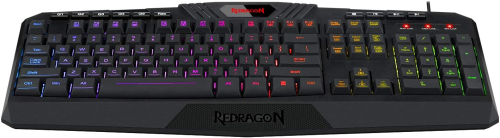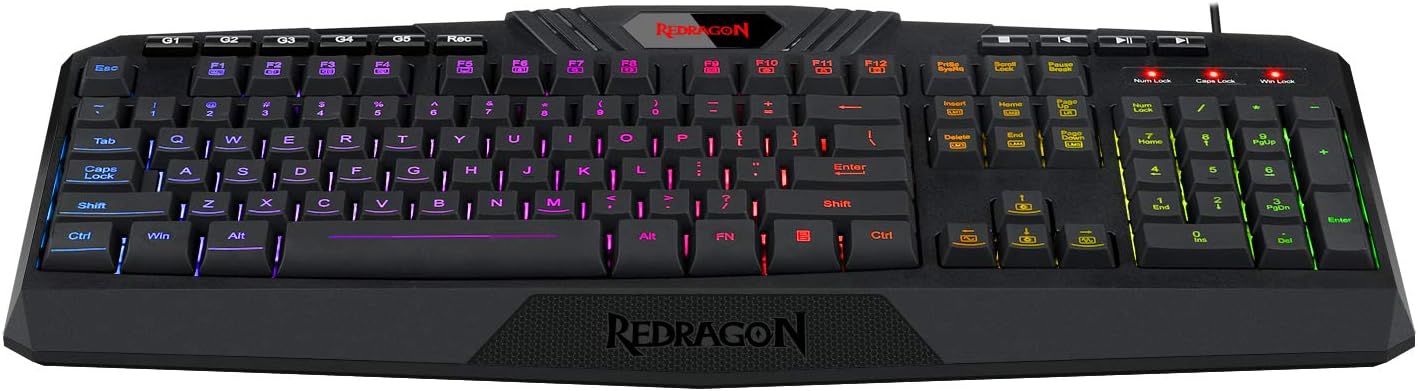 إليك وصف للوحة المفاتيح الميكانيكية للألعاب Redragon K579-RGB (Manyu) الوصف العام: تُعد Redragon K579-RGB لوحة مفاتيح ميكانيكية كاملة الحجم ومصممة خصيصًا للاعبين (Gamers) الذين يبحثون عن الأداء العالي، الدقة، والمتانة. تأتي بهيكل متين من مادة ABS مع إضاءة RGB خلفية رائعة قابلة للتخصيص. أبرز المميزات: مفاتيح ميكانيكية سريعة: مزودة بمفاتيح زرقاء (Blue Switches) توفر استجابة لمسية وصوت "نقرة" مميز، وهي مكافئة لمفاتيح Cherry MX Blue، مما يضمن عمرًا افتراضيًا طويلًا (يصل إلى 50 مليون ضغطة). إضاءة RGB خلفية: توفر 18 وضعًا مختلفًا للإضاءة، مع 9 ألوان متنوعة، و5 مستويات للسطوع والتحكم في السرعة. أزرار ماكرو قابلة للبرمجة: تحتوي على 5 أزرار ماكرو مخصصة (G1-G5) يمكن برمجتها لتنفيذ أوامر معقدة بضغطة زر واحدة. عجلة تحكم بالصوت: تحتوي على عجلة (Scroll Wheel) مخصصة للتحكم في مستوى الصوت والإضاءة بسهولة. تقنية Anti-Ghosting: تدعم خاصية عدم التعارض لجميع الـ 114 مفتاحًا (100% Conflict Free)، مما يضمن تسجيل جميع الضغطات بدقة أثناء اللعب السريع. تصميم متين ومريح: هيكل قوي مقاوم للرذاذ، مع تصميم مريح (Ergonomic) وأرجل خلفية قابلة للتعديل للحصول على الزاوية المثالية للكتابة. التوصيل: كابل USB مطلي بالذهب لضمان اتصال موثوق وسريع.