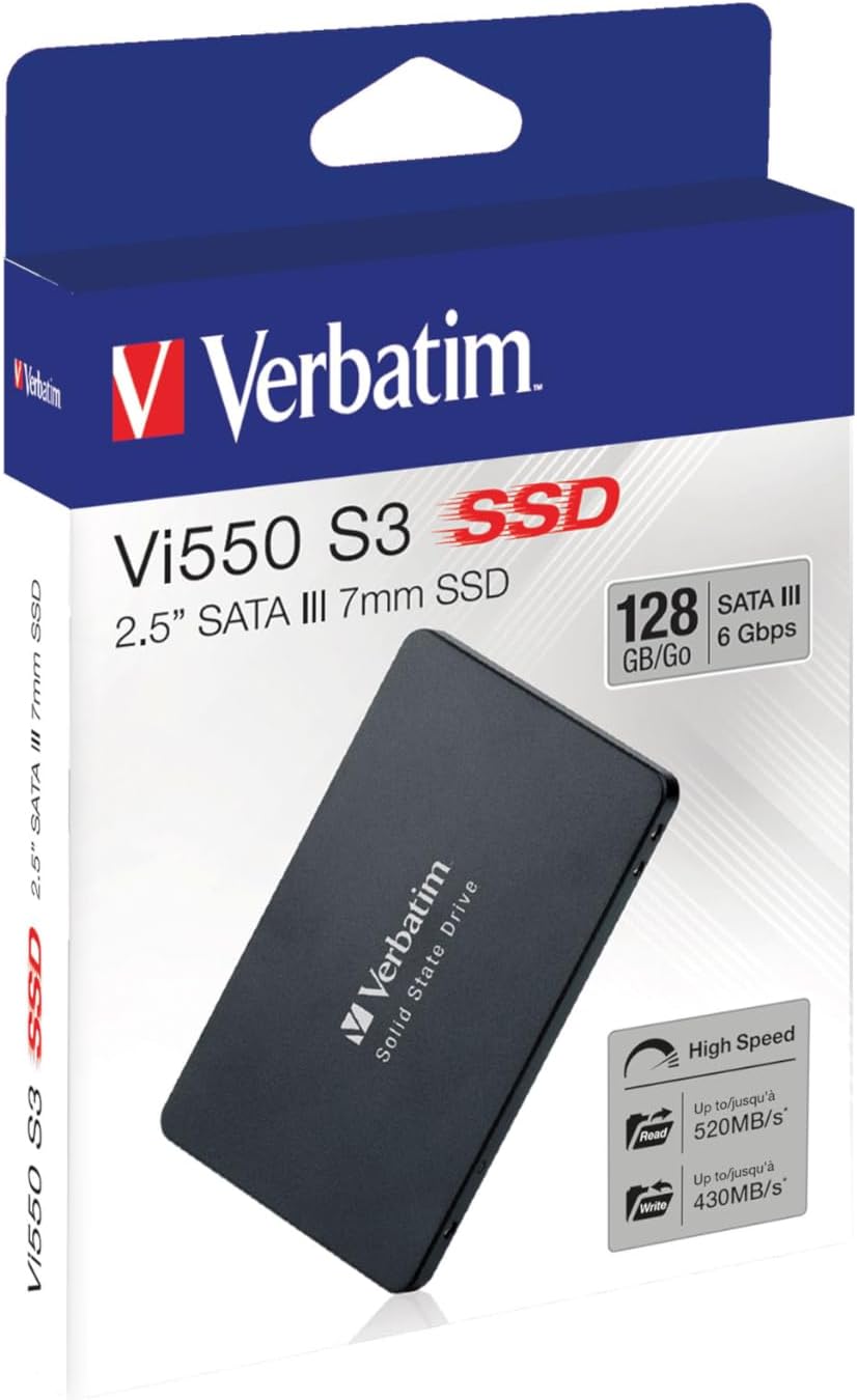 ssd sata verbatim 128 السعة: 128 جيجابايت واجهة التوصيل /SATA III 6 Gb (متوافق مع إصدارات SATA السابقة العامل الشكلي (Form Factor): 2.5 بوصة (7) ملم) نوع الذاكرة : 3D NAND Flash سرعة القراءة تصل إلى 560 ميجابايت ثانية سرعة الكتابة تصل إلى 430 ميجابايت ثانية الوزن: 45 جرام